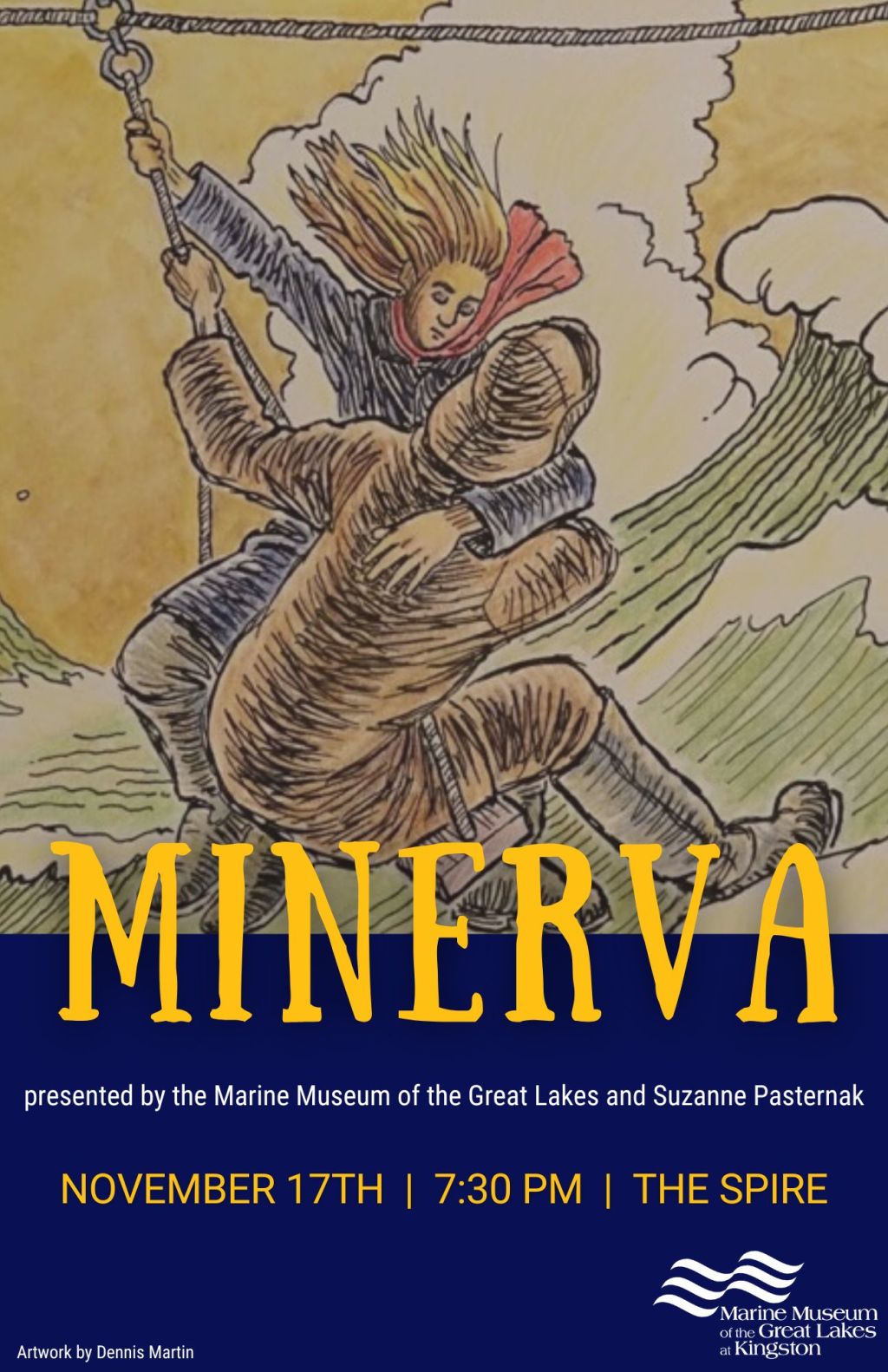 Heritage meets the arts for the dramatic telling of the story of Minerva McCrimmon – local sailor and heroine from Prince Edward County. In partnership with author-artist Suzanne Pasternak, the Marine Museum of the Great Lakes is delighted to host the premiere of Minerva on Thursday November 17, 2022 from 7:30pm to 9pm in the Performance Hall of The Spire in Kingston, Ontario.